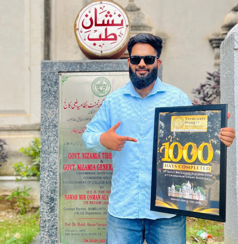 Terminate Hunger’s impact speaks for itself. For over 800+ days, the organization has been providing free breakfast and dinner to the underprivileged at Unani Hospital near Charminar. During the holy month of Ramadan, Terminate Hunger’s Iftar project at Mecca Masjid serves over 4,000+ individuals daily, making it one of their most cherished initiatives.