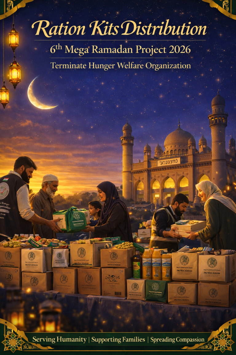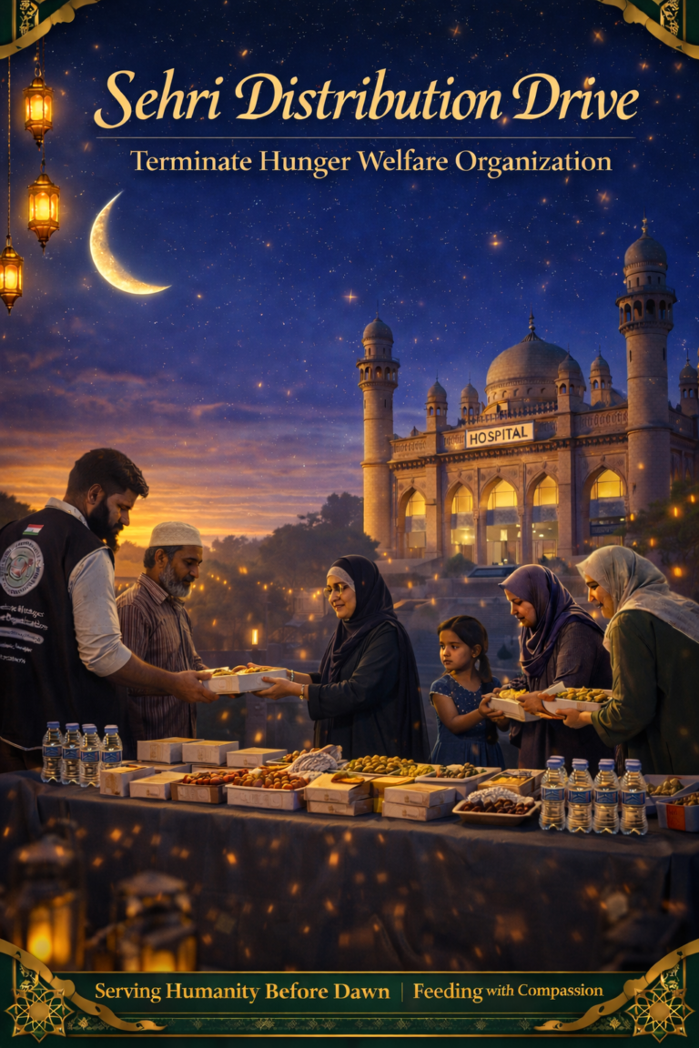 Terminate Hunger’s impact speaks for itself. For over 800+ days, the organization has been providing free breakfast and dinner to the underprivileged at Unani Hospital near Charminar. During the holy month of Ramadan, Terminate Hunger’s Iftar project at Mecca Masjid serves over 4,000+ individuals daily, making it one of their most cherished initiatives.